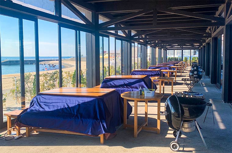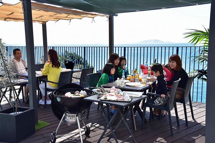 通常のランチ営業に加え、3日前までの予約で17:00以降のディナータイムにも対応。平日・休日問わず10人から予約可能で、兵庫県内屈指の人気デート&観光スポットである「網干の工場夜景」を臨みながらBBQや牡蠣パーティーを楽しむことができます。