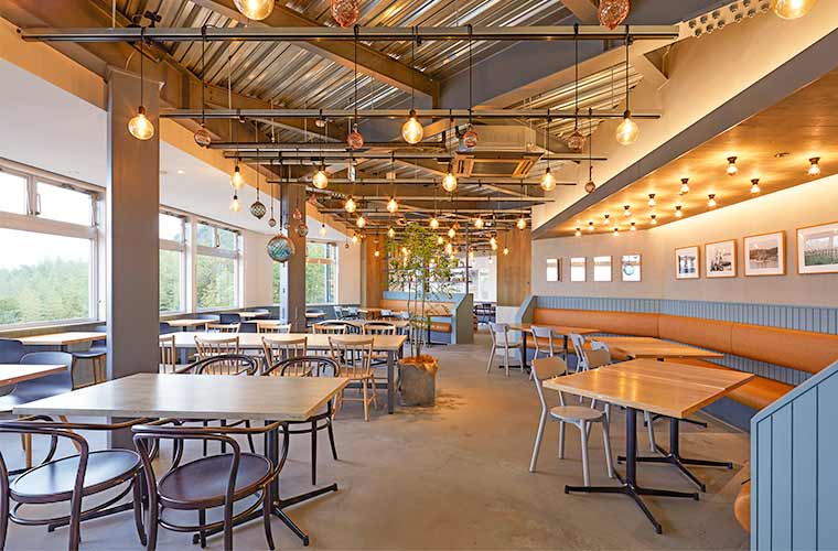 店内のほか、開放感抜群のテラスやペットと食事ができるガーデンテラスにも席を完備しています。