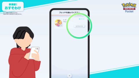 ポケカアプリ『ポケポケ(ポケモンTCGポケット)』で、1周年アプデの2025年10月末から追加される予定の新機能「おすそわけ」機能について紹介します。