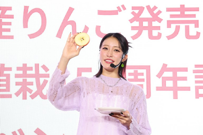 青森りんごアンバサダーの王林が登壇!青森りんごを実食!王林が津軽弁で「たんげうめーよ!」とそのおいしさを熱弁!