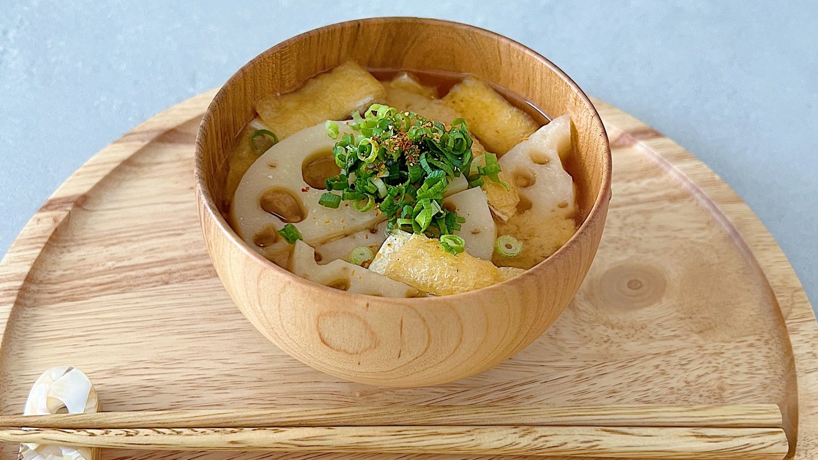 これらを使った「れんこんと油揚げのみそ汁」は、腸を温めながら調子を整え、内側からうるおう肌づくりをサポートしてくれるでしょう。