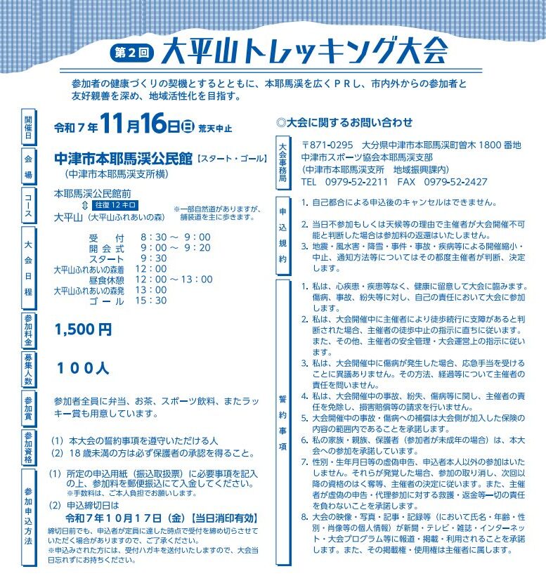 参加者受付中!中津市で『第2回 大平山トレッキング大会』が開催されます