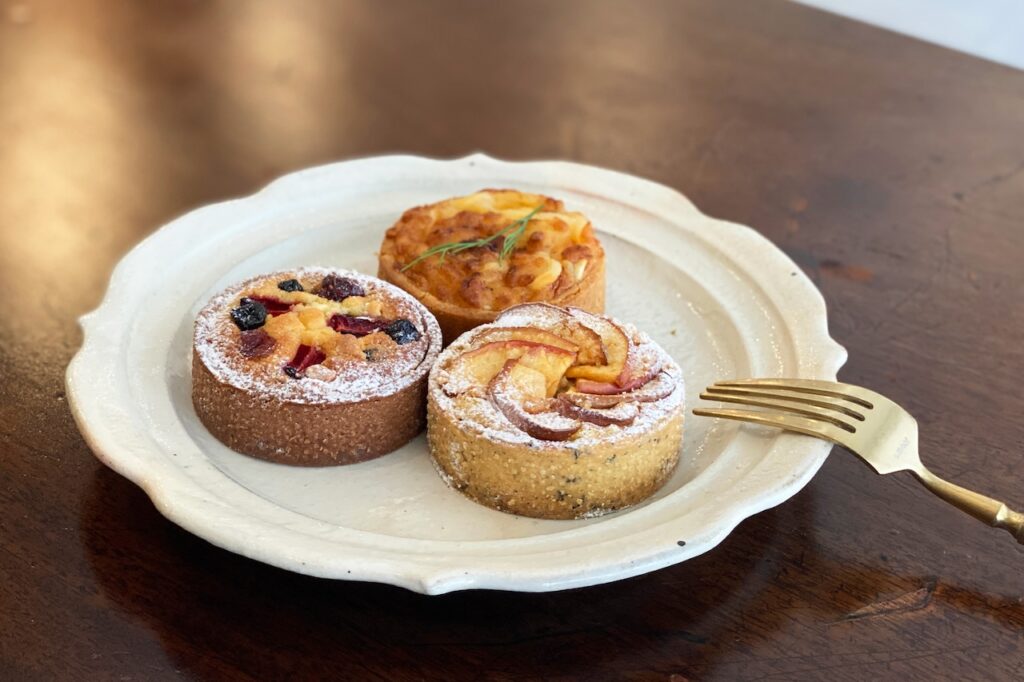 「一号店は遠方からのお客様が多いですが、こちらは地元の方の日常に溶け込むようなお店になれば」と店主さんが語るように、タルトは「塩キャラメルナッツ」などのスイーツ系だけでなく、「パンチェッタとポルチーニ」や「ささみとトリュフ」などのおかず系まで揃うので、朝ごはんに食べるのもおすすめ。
