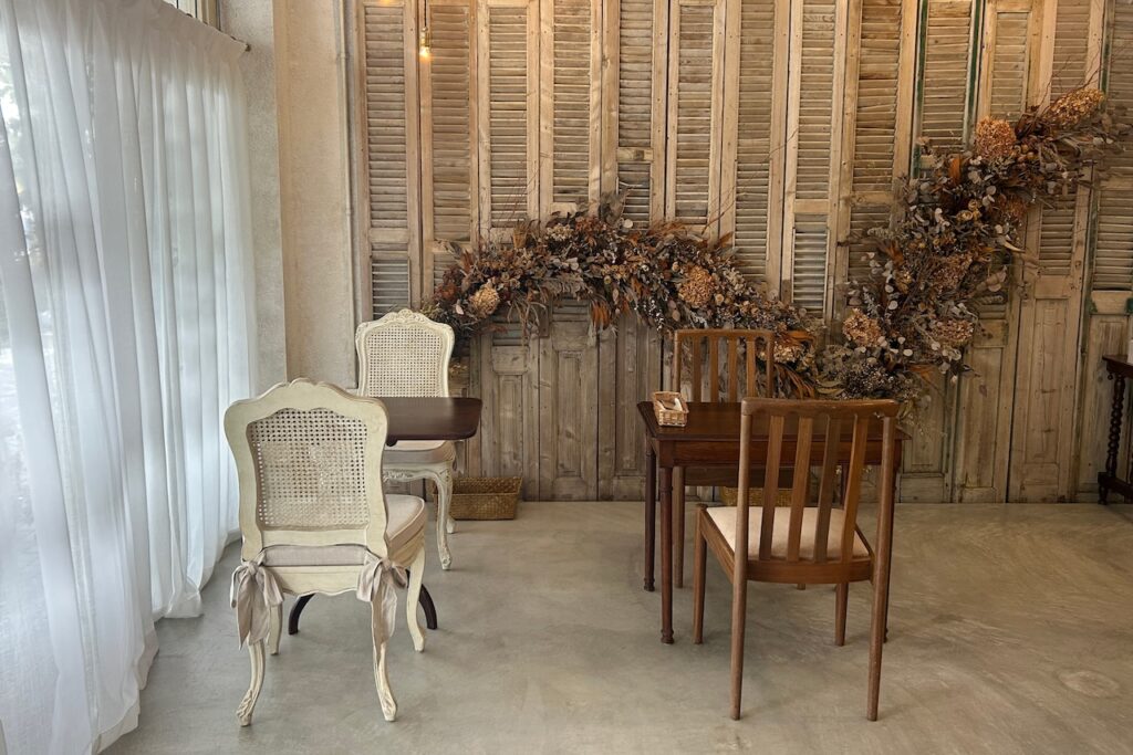 内装は一号店と同じく、アンティーク家具などが並び、まるでフランスの一軒家のような空間。ゆったりカフェ利用もできるので、気軽に立ち寄ってみて。