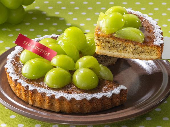10月の「FLOの日」限定タルトは、9月に続いて、色鮮やかで華やかなシャインマスカットをたっぷり使用した「シャインマスカットのタルト」が登場。日によって異なる「シャインマスカットのタルト」が販売されます。