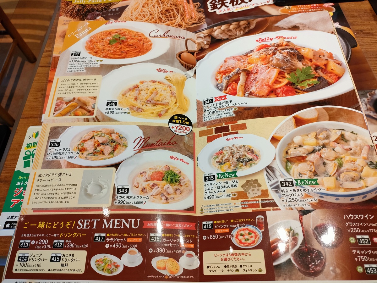 ランチだけでなく、ディナー、ちょい飲みまで幅広く使えそうな「ジョリーパスタ」さん。