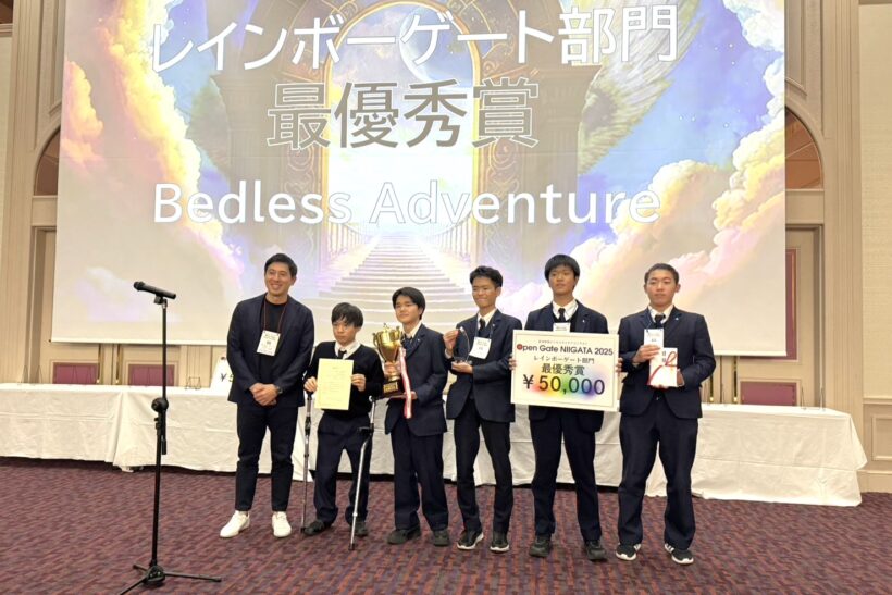 レインボーゲート部門の最優秀賞には、聖学院高校の「Bedless Adventure」が選ばれた。病院で治療を受ける子どもたちが感じる孤独や不安を少しでも和らげようと、体験型のツールやコミュニケーションの工夫を考案した取り組みだ。チームは1月から約10カ月間準備を続けてきたといい、代表で発表した寺田蒼立さんは「見えないところで寂しさを抱えている子がいることを知ってほしい。言うだけで終わらせず、形にして届けたい」と語った。メンバーからは「長い準備だったが、みんなで力を合わせて乗り越えた」「参加に迷ったが、挑戦してよかった」と前向きな声が上がった。