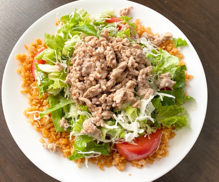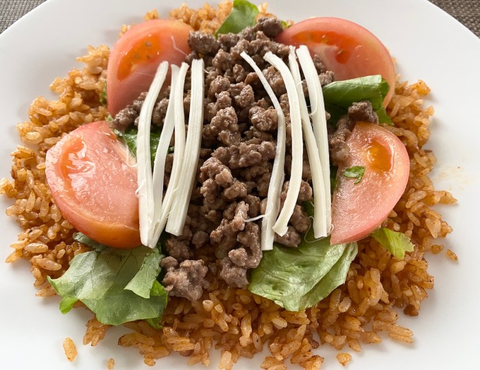 こちらではオススメだという「タコライス」を作ってみた。正確には作ったというより既製品のサラダをのっけて、肉とチーズを少し加えただけなのだが……