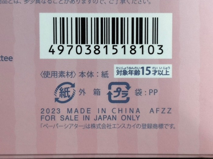 実際、届いた商品を開封すると、「対象年齢15歳以上」の文字。