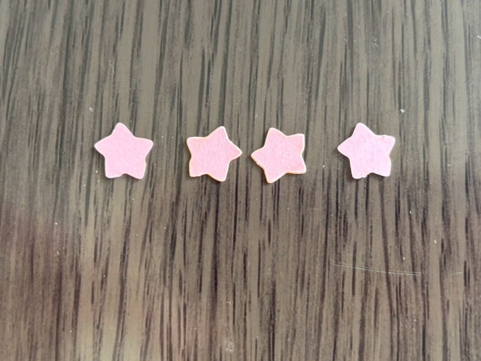 ピンクの星とか大きさもほぼ同じだし、特定するの難易度高過ぎる。なんとか、それっぽいものを見つけて徐々に1枚ずつが出来上がってきた。最初にきちんと読んでおけばよかった……。
