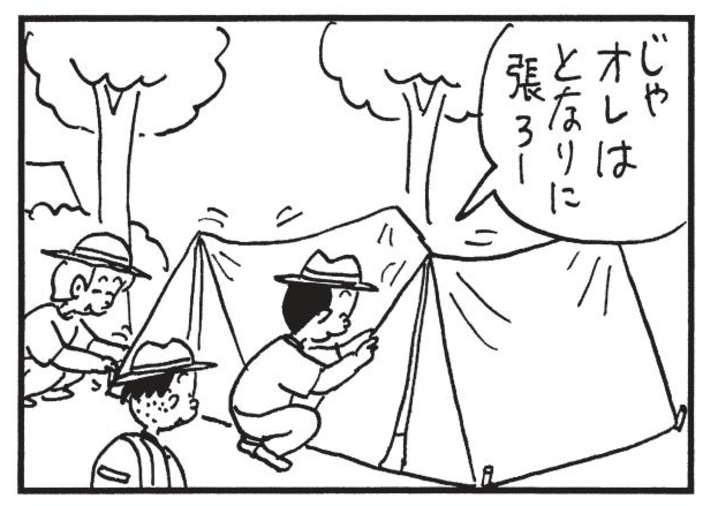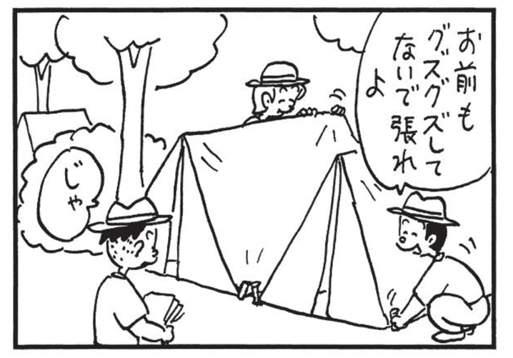 朝イチ更新!4コマ漫画『かりあげクン』テントを張ったまさかの場所