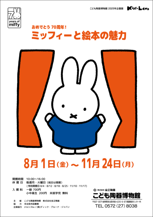 ミッフィー誕生70年を記念する展覧会「おめでとう70周年!ミッフィーと絵本の魅力」が、2025年8月1日(金)~11月24日(月・振休)に岐阜県多治見市のこども陶器博物館で開催されます。