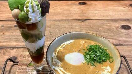 名物のうどんは、基本の「かけうどん」(600円)から様々なトッピングをのせたメニューがラインアップ。どれにするか迷いながらも、定番の「ごぼう天うどん」(800円)をチョイスした。目の前で揚げられるうどんは独特の平麺で、しなやかな歯触りにツルッとした喉ごしが心地いい。カツオが香るスメ(出汁)もバランスが良く、揚げたてのごぼう天がじんわりと染みていくのもなかなかいい塩梅だ。うどんをメインにガッツリ食べたい人には、「牛すじカレーうどん」(950円)や「和牛サーロイン肉うどん」(1,280円)といったメニューも用意されている。