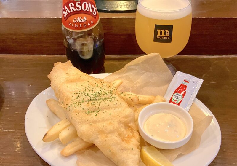 ブリティッシュパブの定番料理といえば、「フィッシュ&チップス」(780円)をおいて他にない。外側はサクッと、中身はホクホクに揚げられた魚のフライに、これでもか!というくらいモルトビネガーをドバドバとかけて食べるのが英国式の流儀だ。客層も福岡に住む外国人やインバウンド客が多く、福岡にいながらにして多国語が飛び交うインターナショナルな雰囲気を味わうことができる。