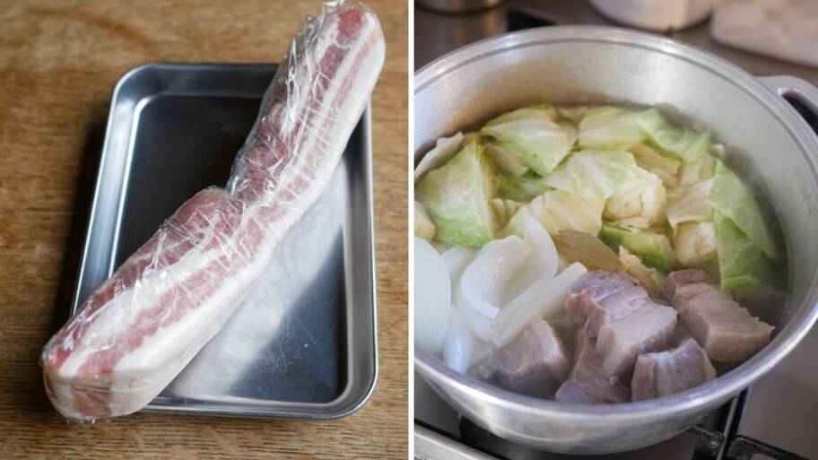 *肉は前日に塩適量を表面に擦り込みラップで包み、冷蔵庫に置く。