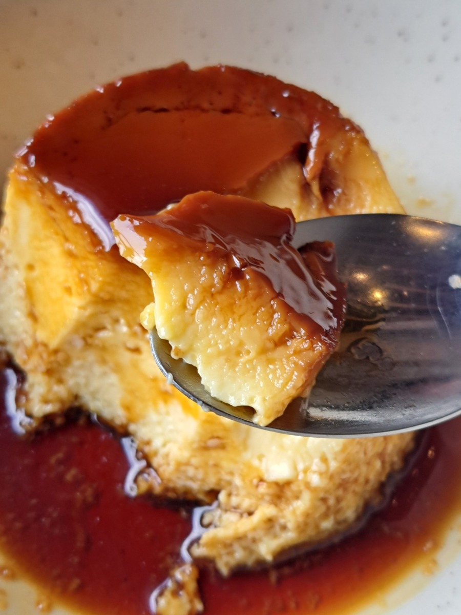 ほろ苦いカラメルがたっぷりとかかっており、固めです。