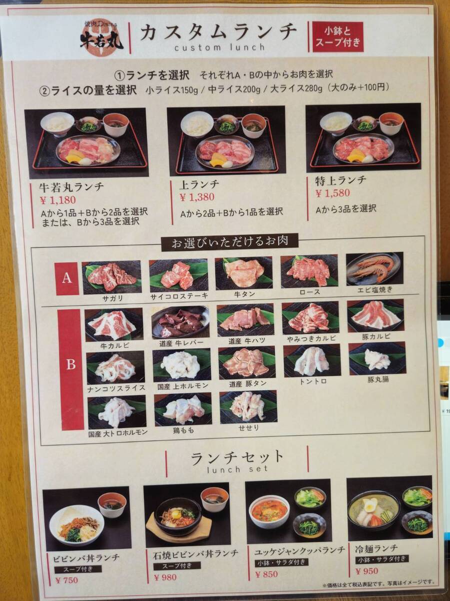 価格によってお肉の種類を選べるカスタムランチがとってもおすすめ。