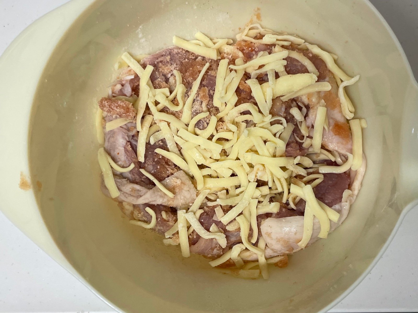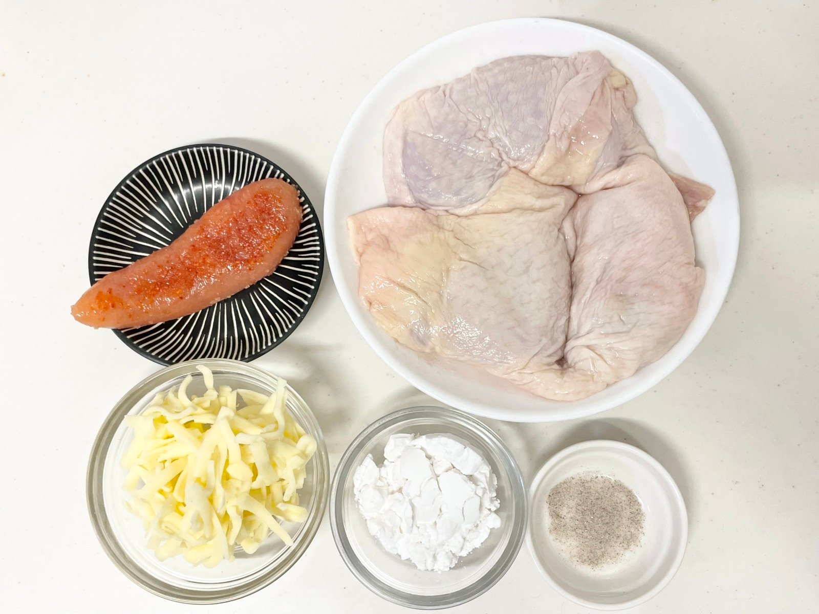 カリッと香ばしいチーズと明太子の旨味が鶏肉に絡み、やみつきになる一品です。