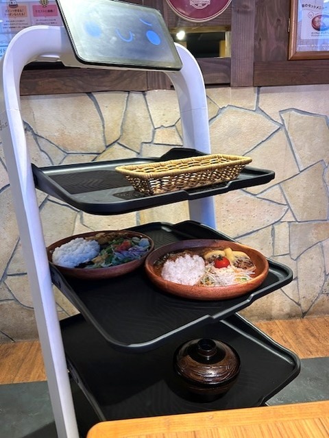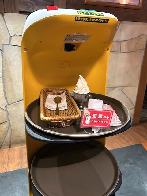 タッチパネルで「食後料理の提供依頼」ボタンを押したら、いろどりセットに付いている北海道ソフトをロボットが運んで来てくれました~♪