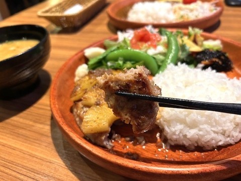 ハンバーグはパインがのっているものを選択しました。ハンバーグとパインの甘みと爽やかな味が相性ぴったり!食べやすい柔らかなハンバーグで、ソースもやさしい味つけ、年齢問わず誰でも楽しめるハンバーグだと思いました。