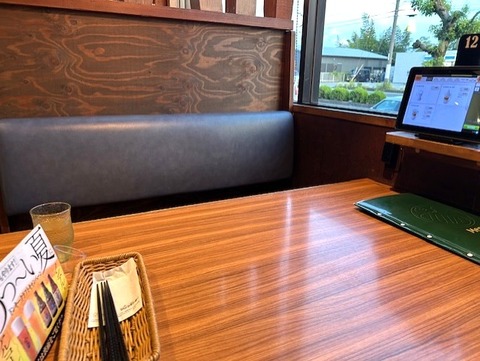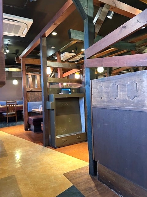 広い店内は木材を活かし、各テーブル席が仕切られています。