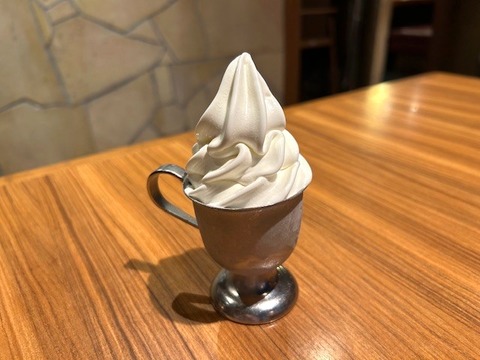 キンキンに冷えたカップに入った北海道ミニソフトクリーム。とってもミルキーで後味もしつこくなく、お腹いっぱいでもさらっと美味しくいただきました。