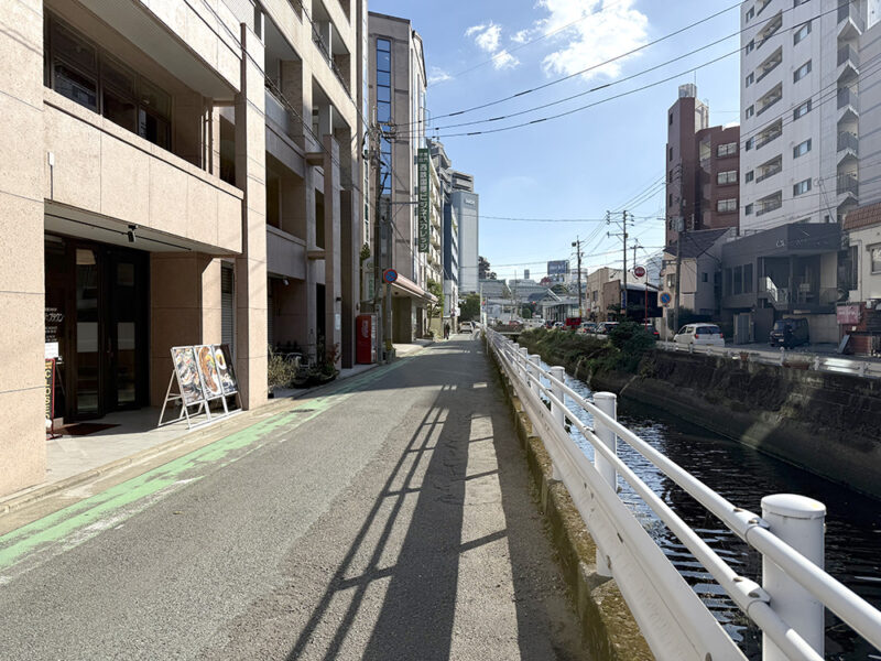 まずはルートのご紹介。薬院駅の西側を南北に流れる薬院新川沿いをしばらく歩きます。