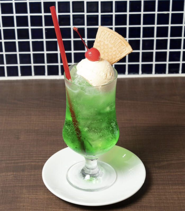 また、14:00からのカフェタイムには緑・赤・青の3種類のソーダフロート(各税込680円)やクラシックスタイルのプリン(税込600円)といったレトロな喫茶店メニューも楽しめますよ。