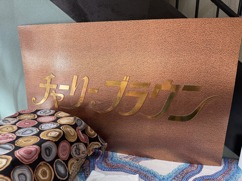 旧店舗で使用していたという店名看板。階段の一角で新生チャーリーブラウンを静かに見守っているようでした。