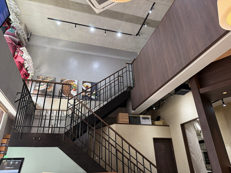 天井が高い理由は、実は2階建てになっているからなのです。店内の階段を上って2階へと行ってみましょう。