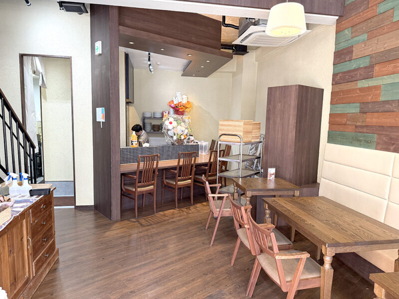 フロアとインテリアもウッディで統一された店内は、ゆとりのある落ち着いた雰囲気を醸し出しています。