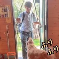 しっぽを大きく左右に振ったり、相手のことを上目遣いで見たりします。