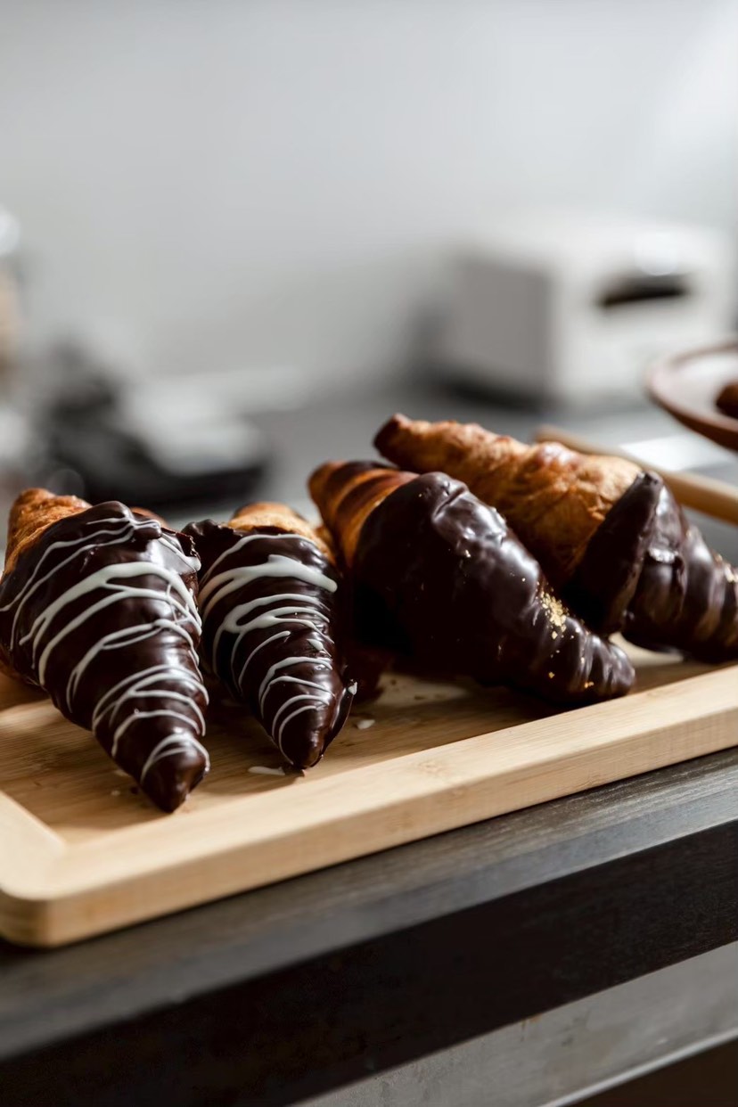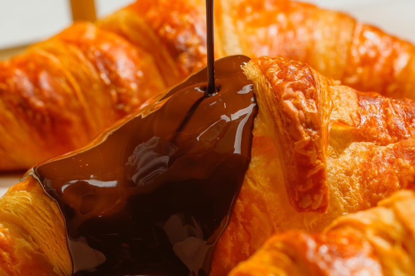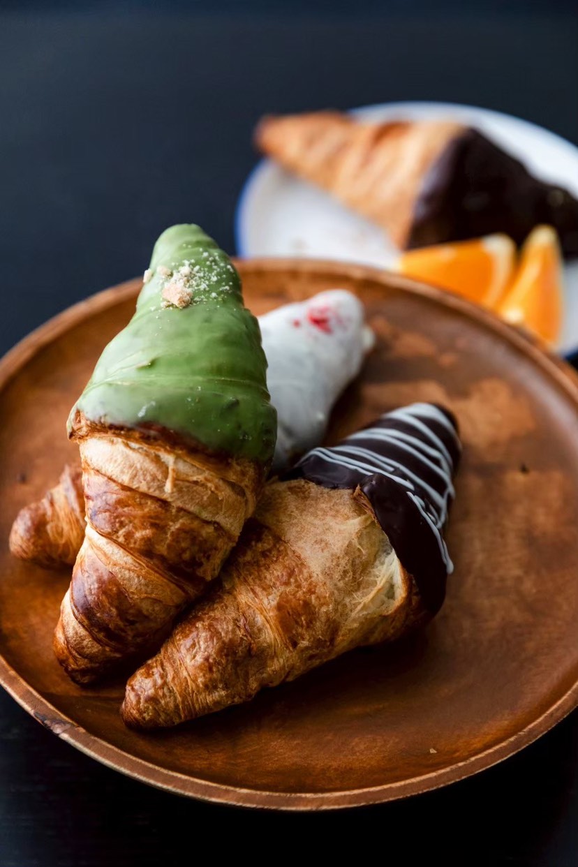 クロワッサンは毎日店舗で焼き上げコーティング。バターの香り高く、チョコレートに合うしっとりサクサクな食感に仕上げている。
