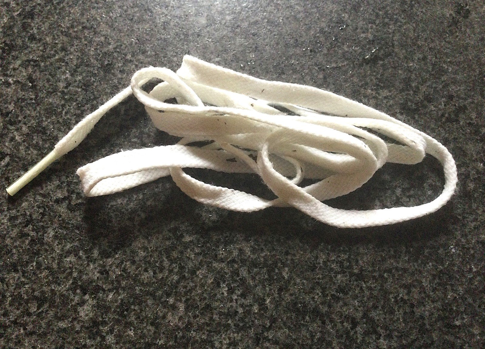 ※今回の方法は、ひもの素材によってはあまり効果が出ないこともあります。吸水性が高いコットン素材やキャンバス地の靴ひもは水が染み込みやすいので、効果が現れやすい傾向があります。一方、高級スニーカーに使われるワックスコーティングの靴ひもや、ツルツルとしたポリエステル素材の靴ひもは水をはじきやすく、効果を感じにくいことがあります。