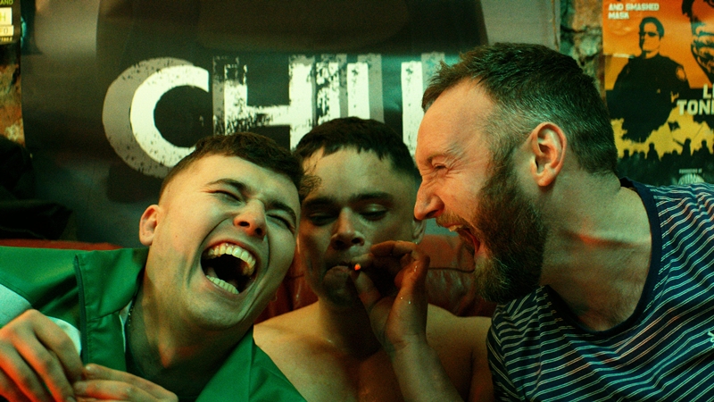 本作は、そんなKNEECAPの誕生を、アイルランド語法制化を求める抗議活動を背景に辿った“ほぼ実話”の半自伝的物語。北アイルランド紛争の傷跡が深く残る西ベルファストのドラッグにまみれた労働者階級の若者を、ユーモアを交えてポップなテイストで描く。