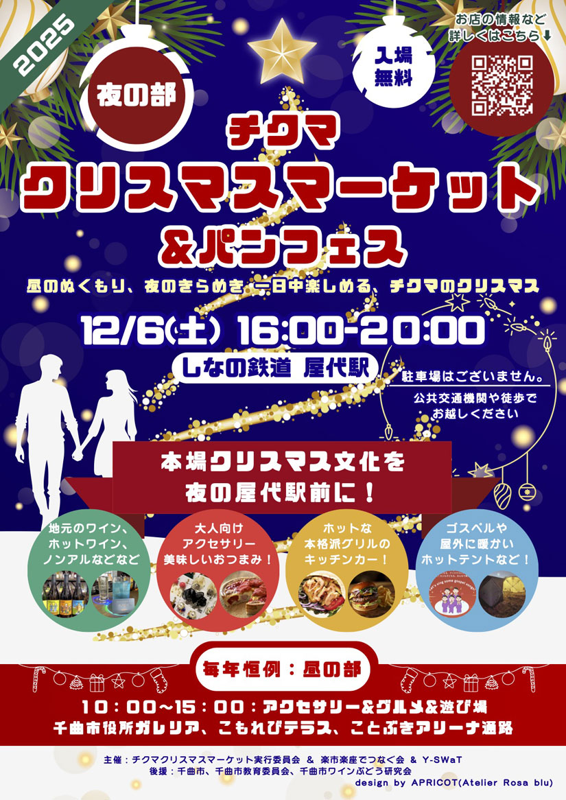 長野県の千曲市で、恒例となった人気イベント『チクマクリスマスマーケット&パンフェス』が、2025年12月6日(土)に開催。
