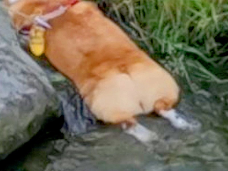夏、散歩中に水で体を冷やす犬→想定以上に『気持ちよさそうな光景』に19万いいね集まる「食パンの川流れ」「冷やしコーギーw」と大反響