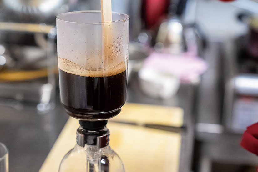 注文ごと豆を挽いてサイフォンで一杯ずつ淹れています。