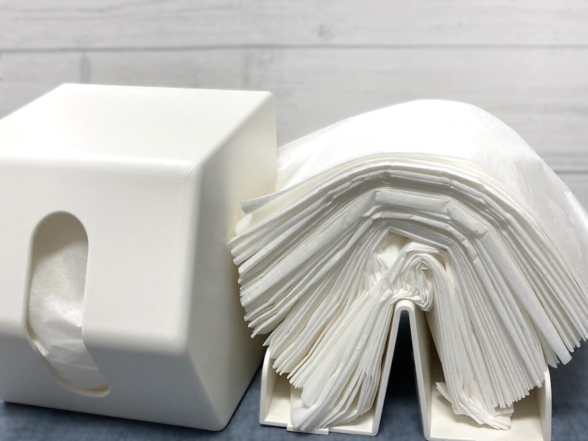 普通サイズのティッシュを折り曲げて入れると、屋根から煙突の煙のようにティッシュがのぞく遊び心もあります。