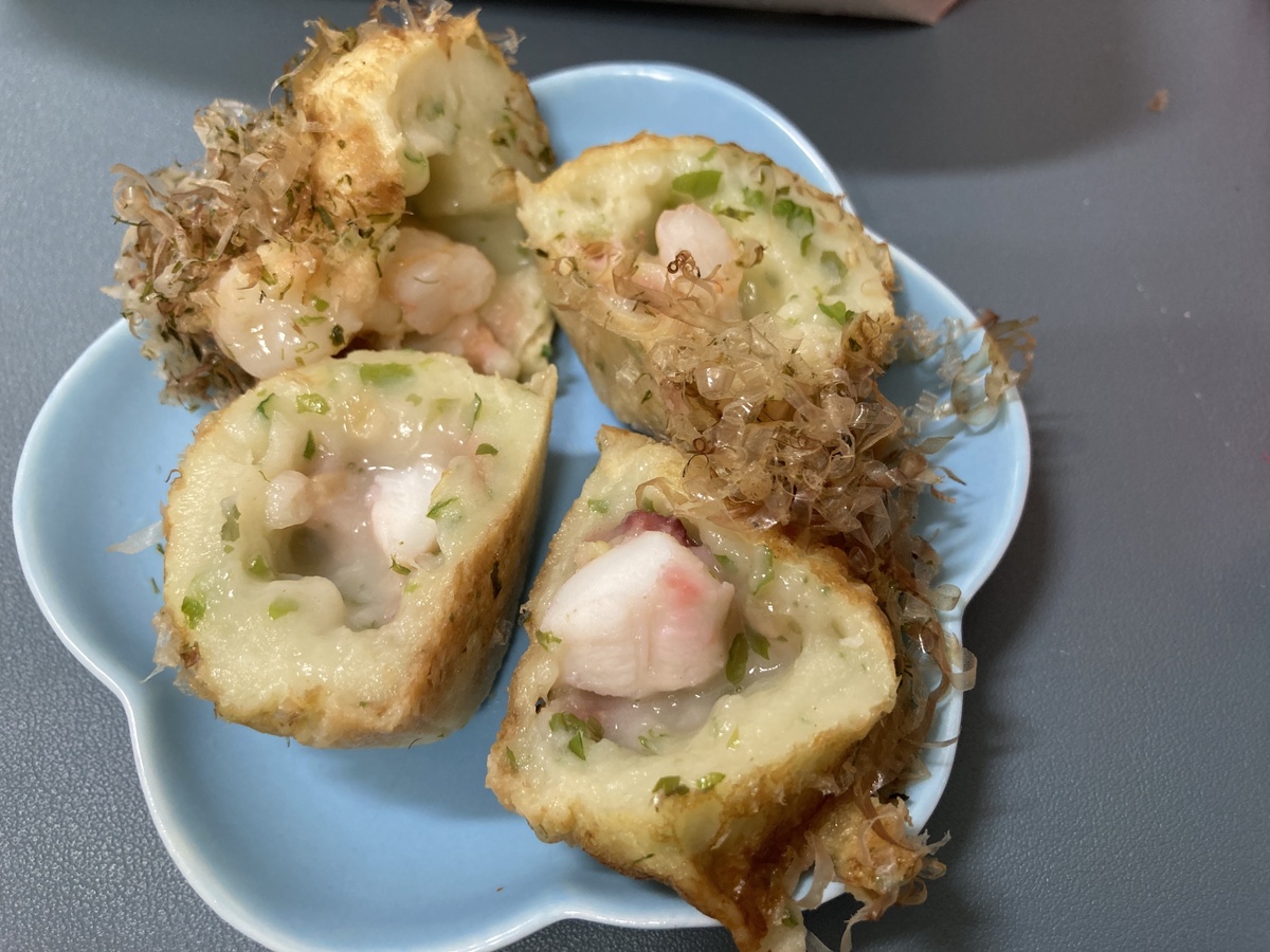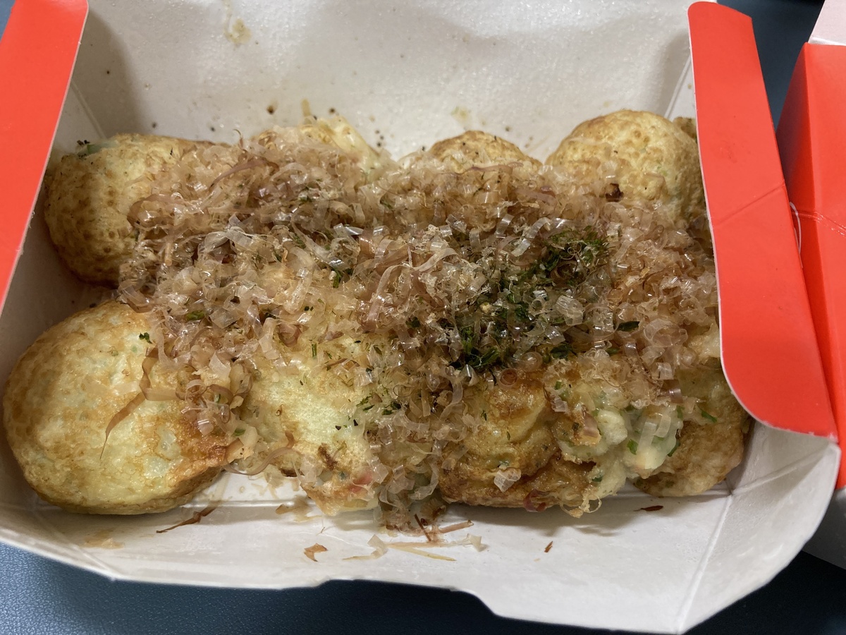 注文したのは、羅臼産塩「ラウシップ」を使った「えび4個 たこ4個 なかよし盛(塩)」(税込810円)。