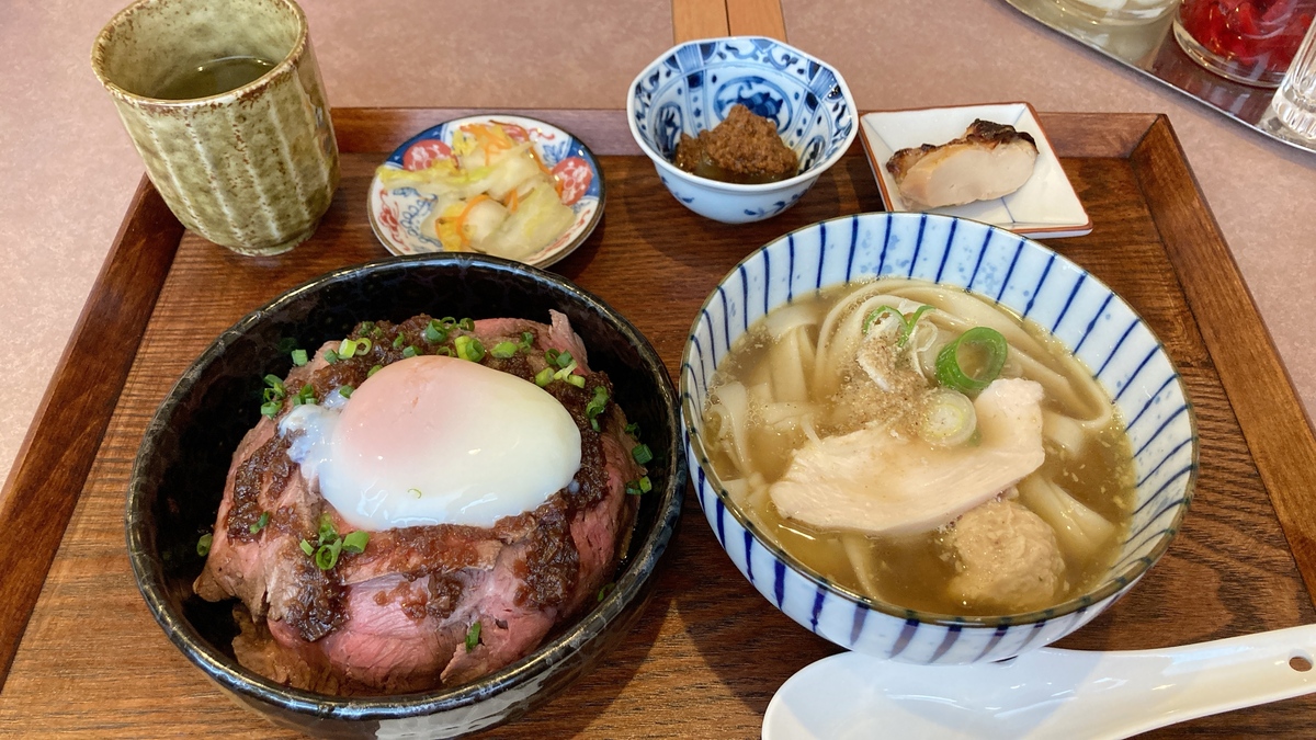 今回いただいたのは「和牛のローストビーフ丼ときしめん定食」。