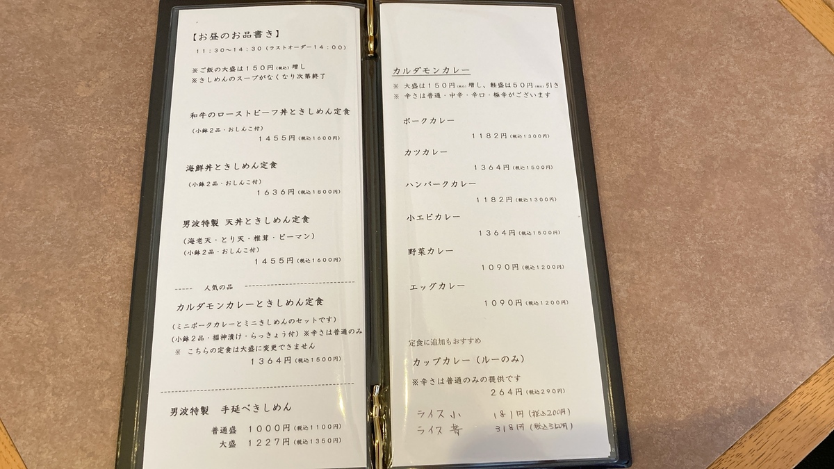 このほか、単品のきしめんやカルダモンのカレーも用意されています。