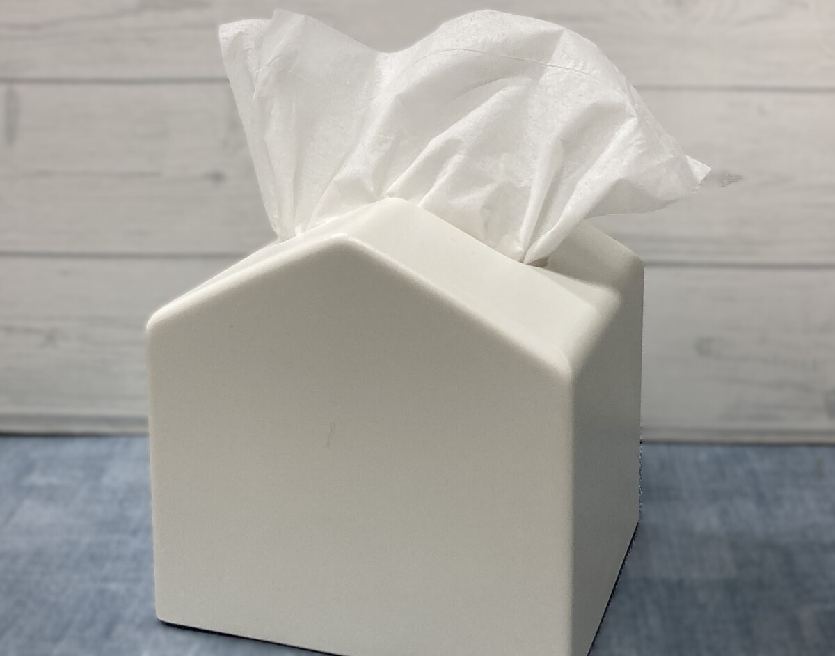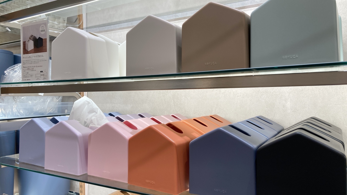 今回購入した「Moi コンパクトティッシュケース(税込1089円)」は、おうち型のデザインで、淡い色合いがインテリアになじみやすく可愛いポイント。