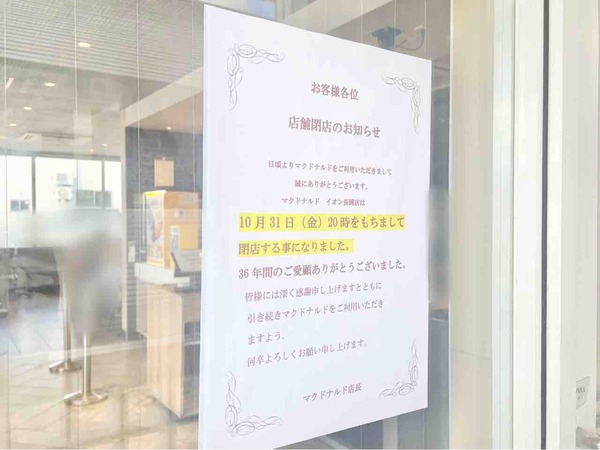 36年間ありがとう!古正寺町にある『マクドナルド イオン長岡店(McDonald's)』が閉店するらしい。