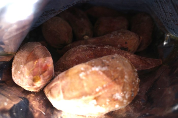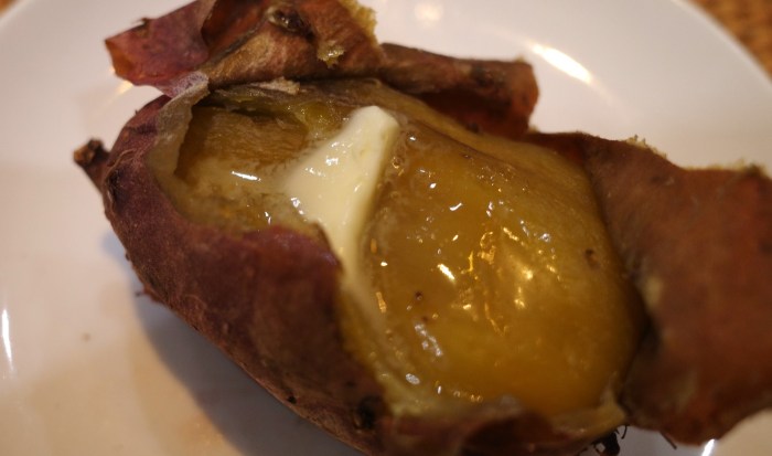 個体差があるようで、ひと袋に、そのようにさまざまなタイプの芋が入っているだなんてお得な気分だ。そのままでも十分甘味があって美味しいが、バターを乗せたりアイスを乗せたりしても良し。