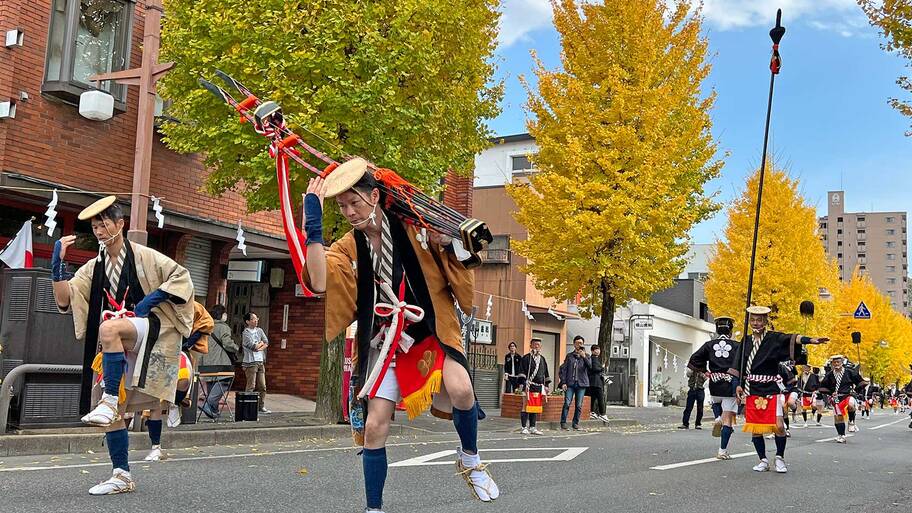 山口に現在伝わる鷺流狂言は、長州藩お抱え狂言方・春日庄作(しゅんにちしょうさく)が始祖。彼は、分家・鷺伝右衛門派に学び、江戸時代末期に活躍。明治になり厚狭郡(現宇部市)で農業に従事していたが、1886年(明治19年)、野田神社の上棟式で神事能に招かれ、狂言方として出演した。それが縁で、山口・本圀寺(道場門前)に移り、趣味として習いにきた人々に狂言を教えるように。これが、現在の山口鷺流狂言の始まりだ。そして、町の人々が相互に稽古をつける「伝習会」によって、鷺流は受け継がれていった。