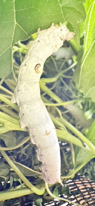 卵は業者から仕入れ、孵化後は、無農薬で育てた柔らかい桑の葉を与える。葉を上からかぶせると、蚕は習性に従って上に進み、掃除の手間が減るという。