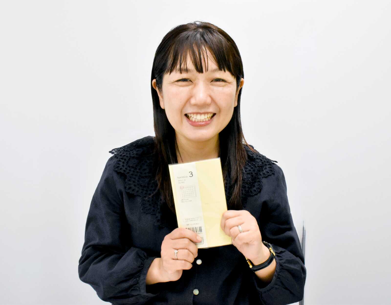 「こんなに長く自分が働けるとは思ってなかったんですよ(笑)もともと本好きだったので出版社志望で入社して、いくつかの部署を経験し、思えば山あり谷ありでした。色々ピンチもあったけど、何事も自分次第! 自分のアイデアが商品になり、お客さまの手に渡って1年間大切にしてもらっているんだと思うとうれしくて……。今は後輩たちと一緒にチームで動くことも多くて楽しいです。彼女たちと共に悩みつつ業務と向き合う日々です。」