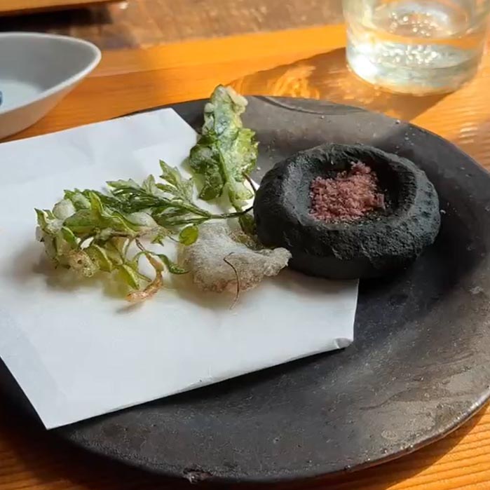 地元の新鮮な野菜や野草を使った料理は、素材の旨みを生かした優しい味わいです。