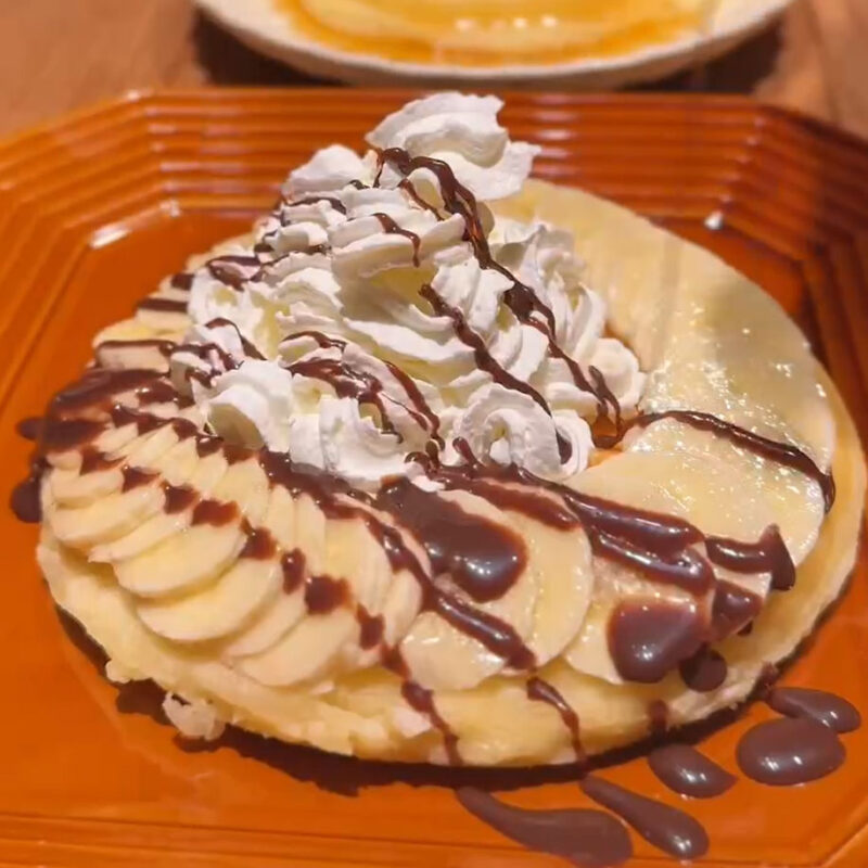 夜に食べるスイーツってちょっと背徳感がありますが、これがまた最高に美味しい!チョコバナナパンケーキとチョコラテは、甘党の方に特におすすめです。